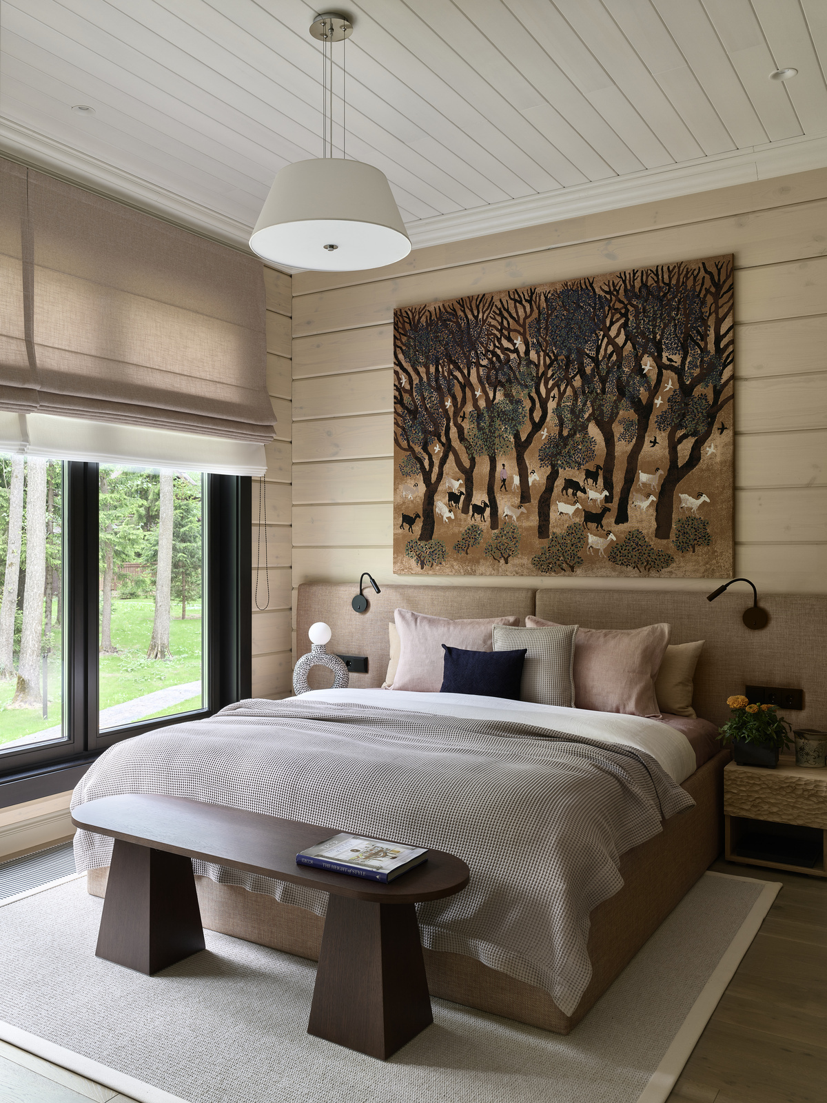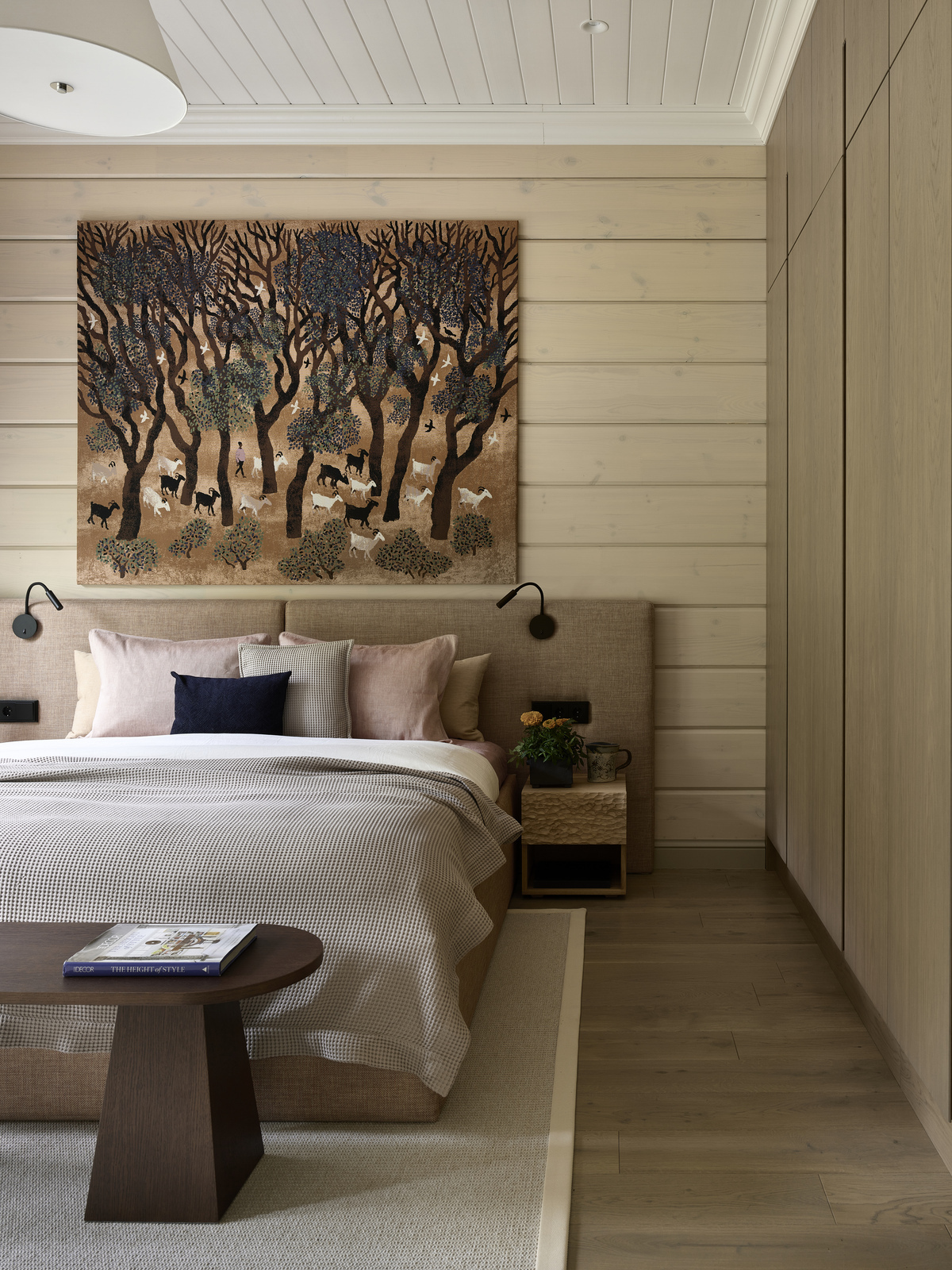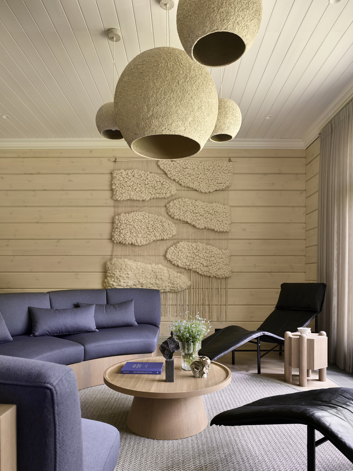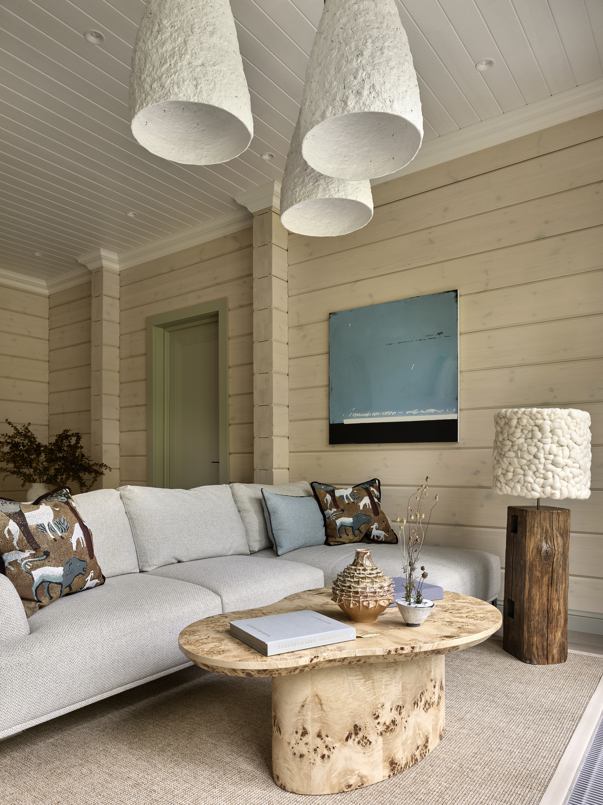 Интерьер и экстерьер взаимосвязаны. В этом проекте мы наглядно это продемонстрировали. Каждый предмет отсылает к природе. В интерьер много натурального дерева, камня, керамики, сизали и др. Гобелены в спальнях братьев Либа иллюстрируют сюжеты на природе и др.