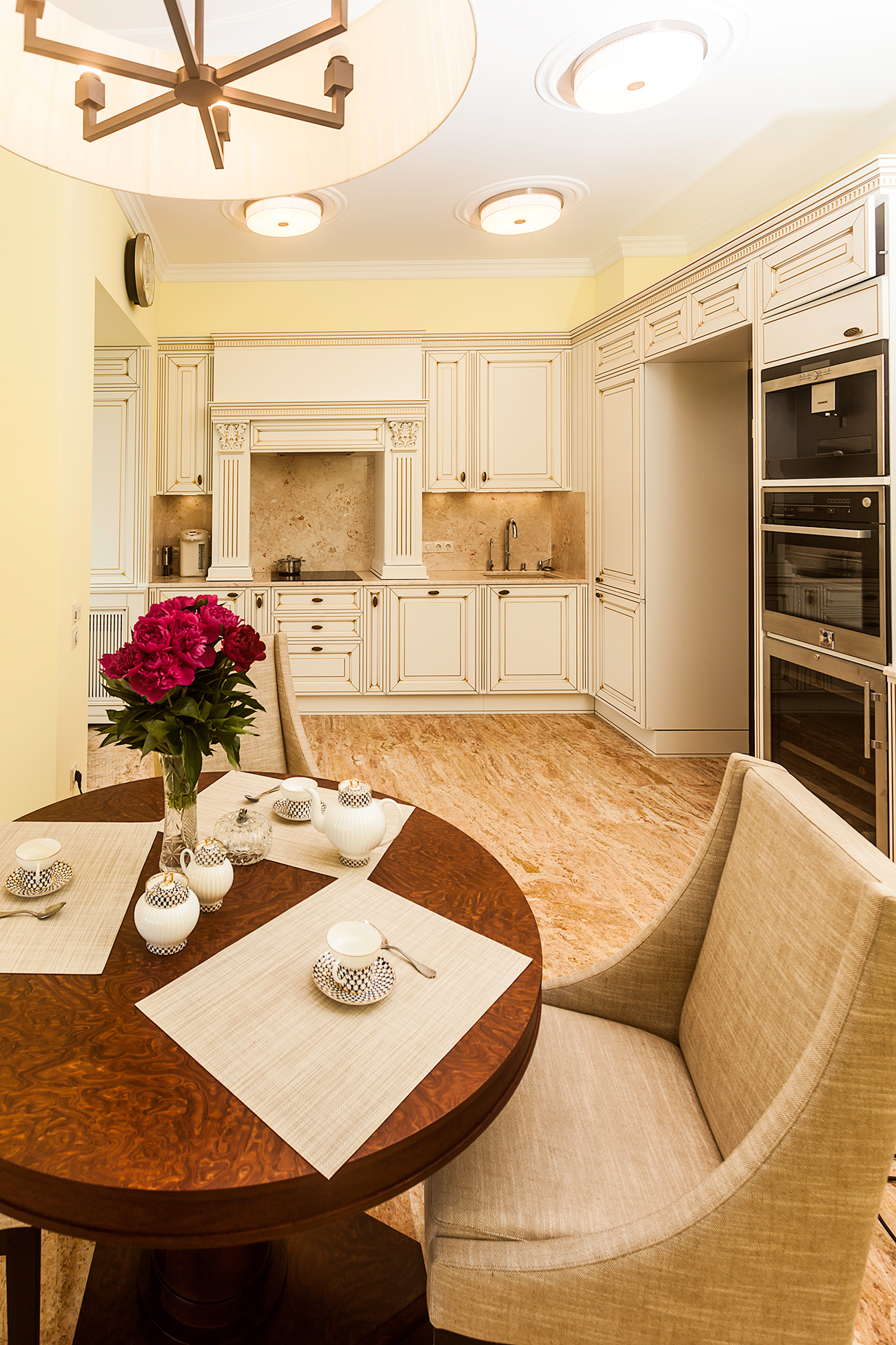 Стены с классическими гипсовыми раскладками. Идеально подобранный текстиль. Скрытые от глаз зоны хранения. Написанные на заказ картины и коллекционные скульптуры. Индивидуально. Стильно. Интерьер – вне времени! Изысканная игра контрастов. Дизайнерская мебель лаконичных форм. Стены сложных сливочно-жемчужных оттенков. Дом-энергия. Дом-вдохновение.